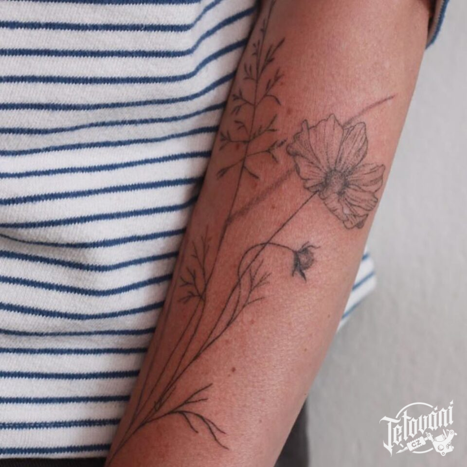 Tetování luční kvítí, květiny na předloktí