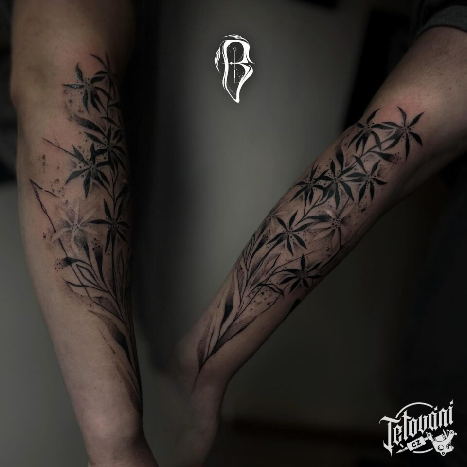 Tetování luční kvítí, květiny na předloktí