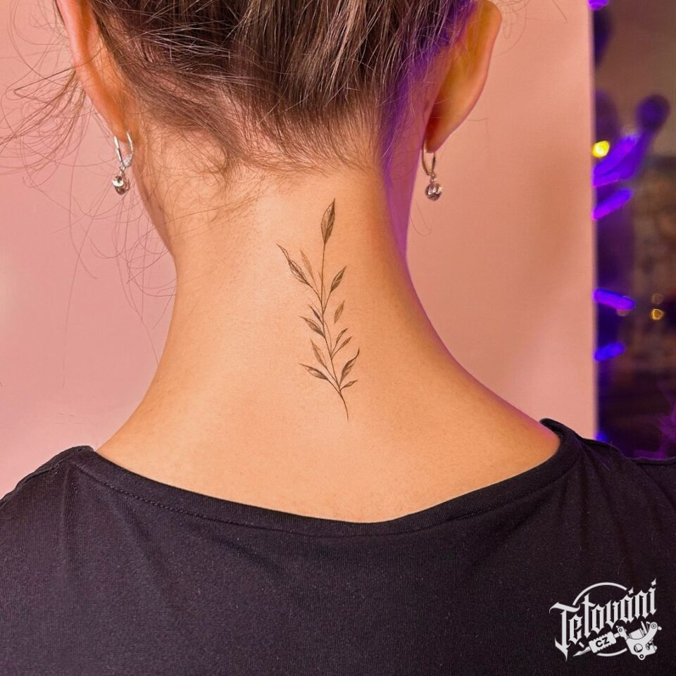 Tetování luční kvítí na krku