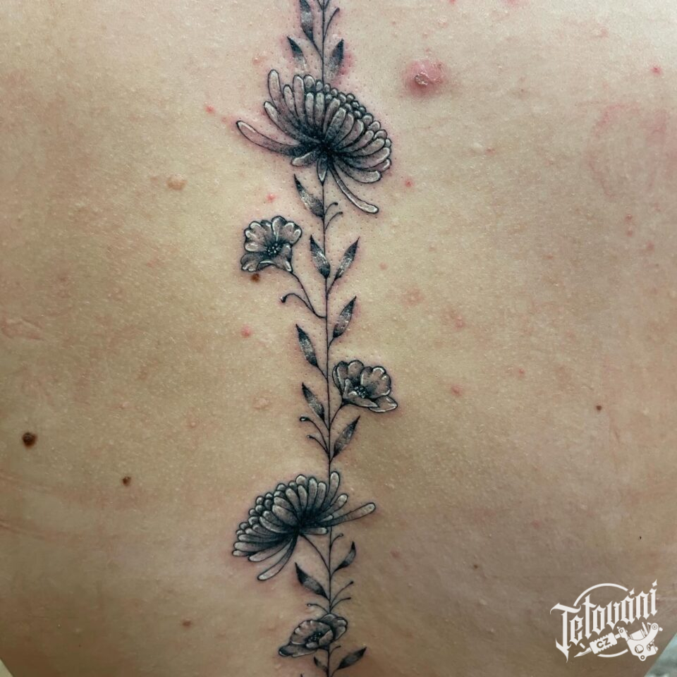 Tetování luční kvítí na zádech