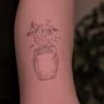 Tetování luční kvítí ve váze na rameno