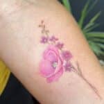 Tetování luční kvítí vlčí mák a pomněnky, květiny na předloktí