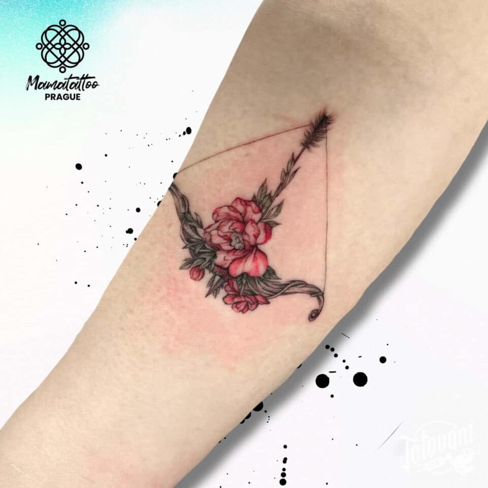 Tetování luk a květina na předloktí