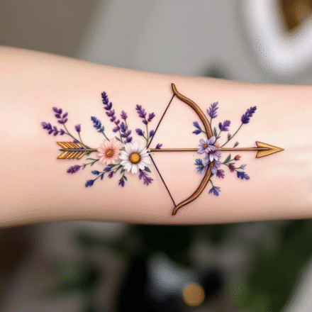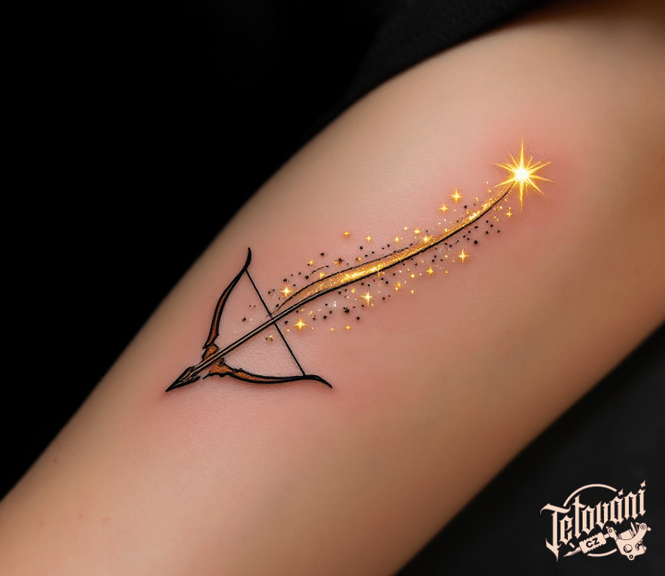 Tetování luk a šíp, znamení zvěrokruhu, střelec na paži