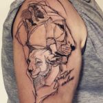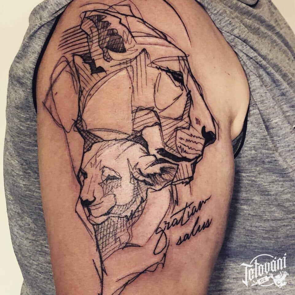Tetování lvice a lvíče, symbol rodiny na rameno