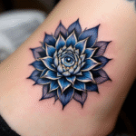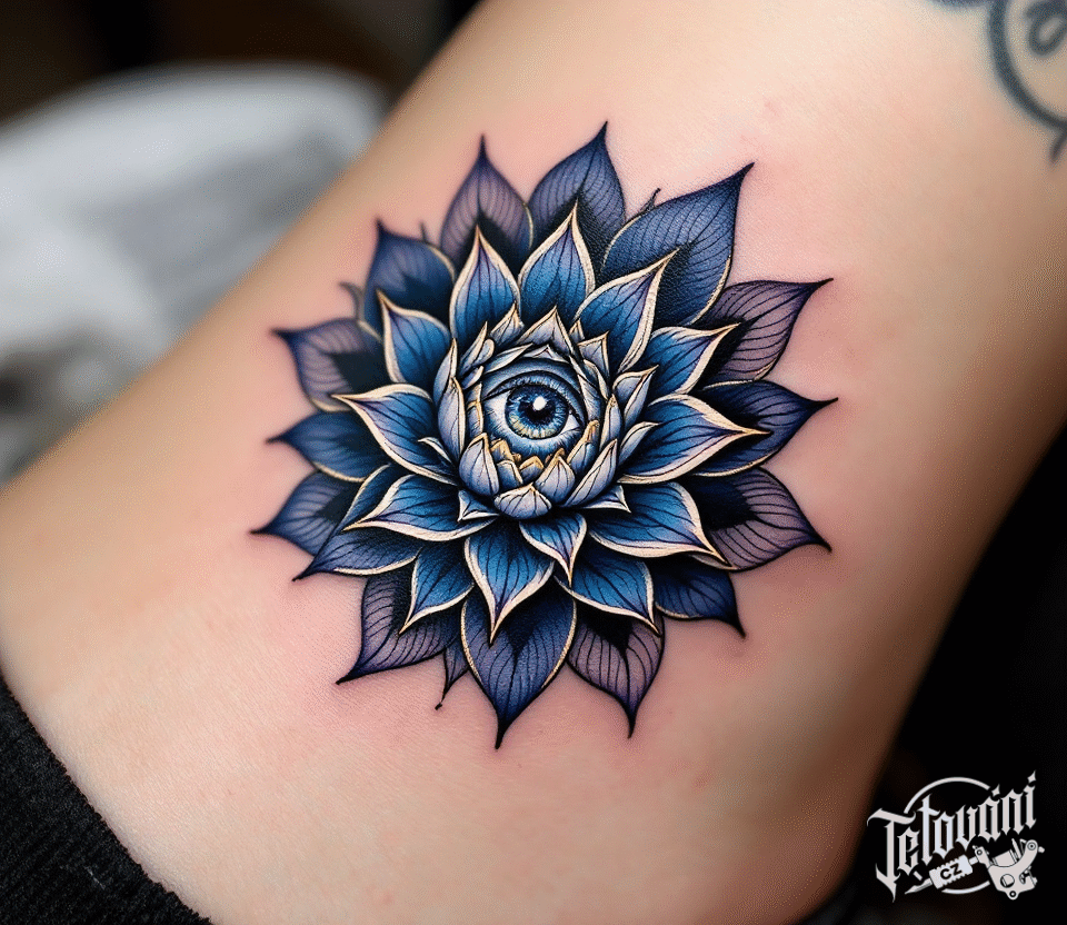 Tetování magické symboly ochrany, lotosový květ s okem na noze