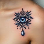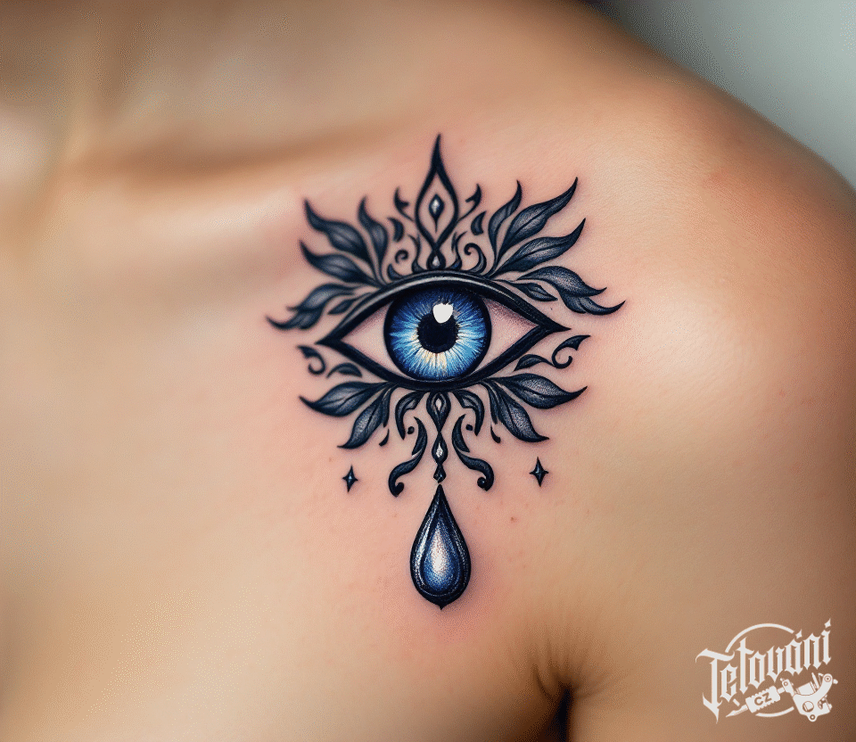 Tetování magické symboly ochrany, oko pod klíční kostí