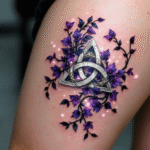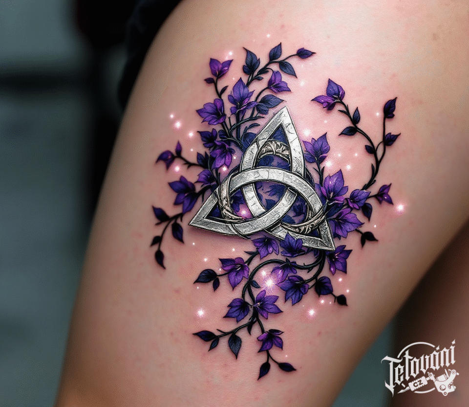 Tetování magické symboly ochrany, triquetra na boku stehna