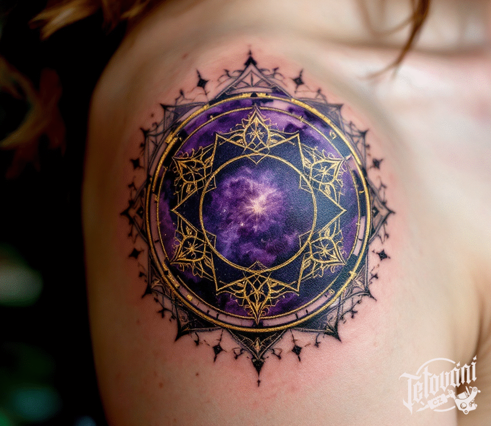 Tetování magický symbol ochrany na rameni