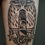 Tetování maják, květiny na stehno
