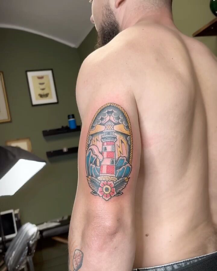 Tetování maják na zádech