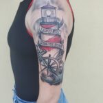 Tetování maják, nápisy a znaky a symboly, kormidlo na rameni