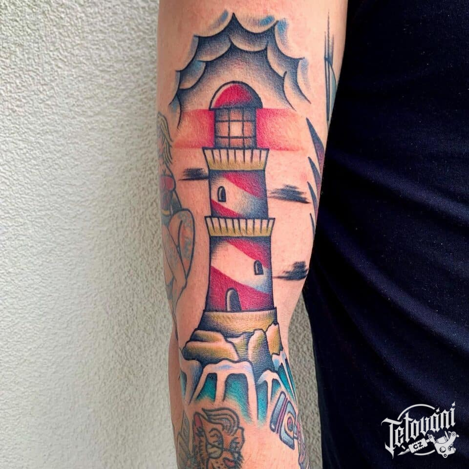 Tetování maják v moři na paži