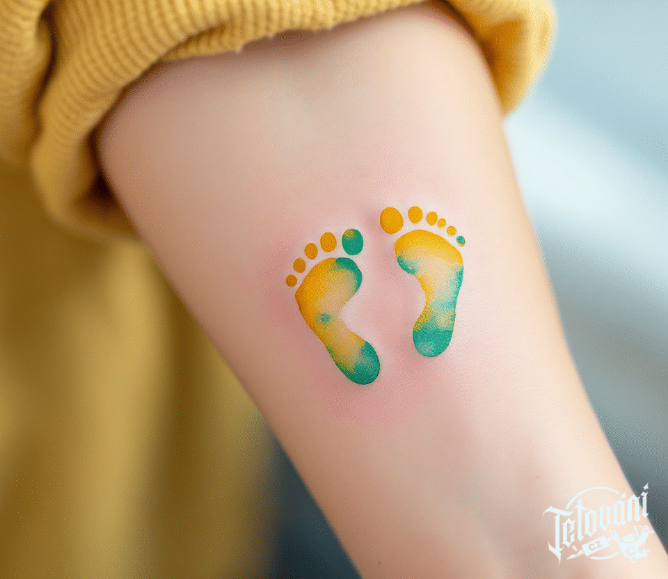 Tetování malé dětské nožičky na předloktí