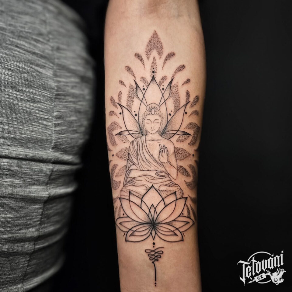 Tetování mandala lotus, Buddha na předloktí