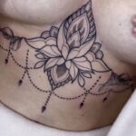 Tetování mandala lotus mezi prsa