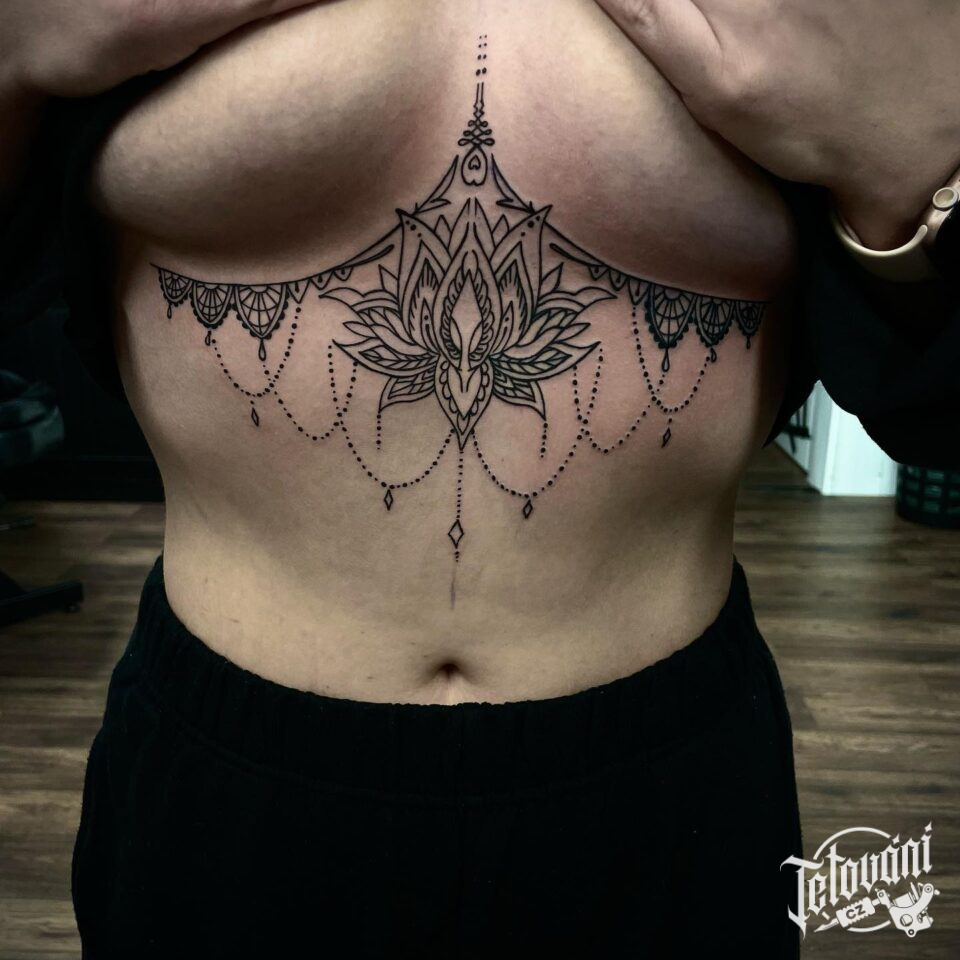 Tetování mandala lotus na břichu