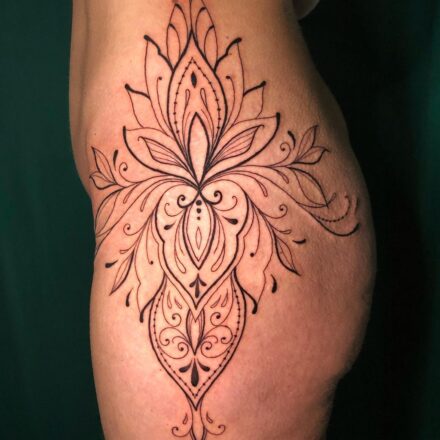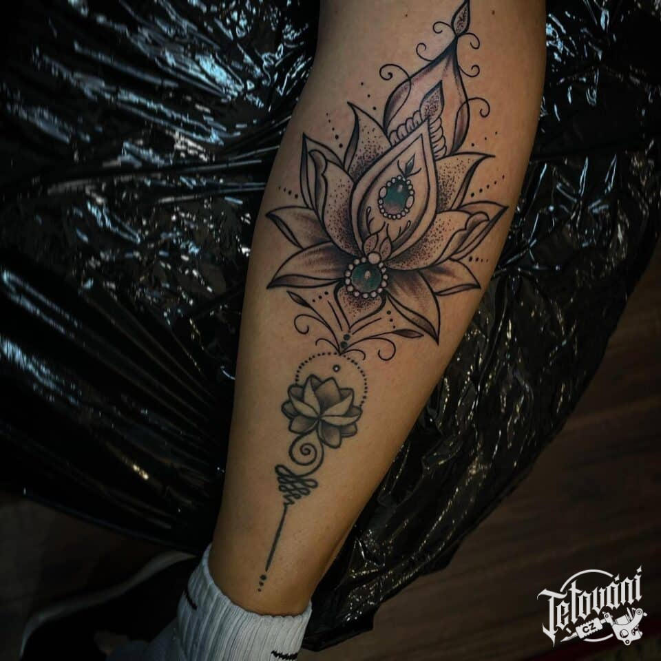 Tetování mandala Lotus na lýtku