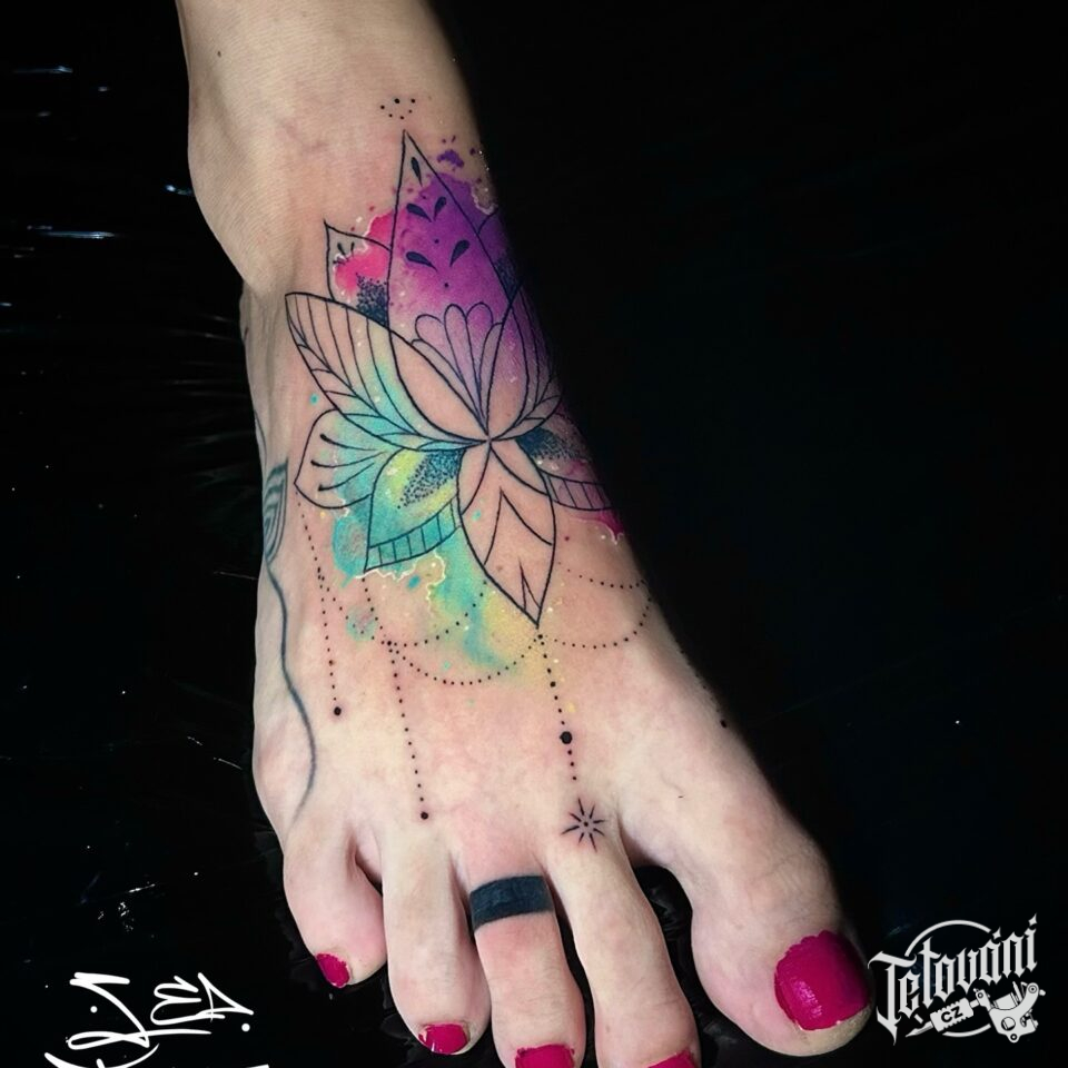 Tetování mandala lotus na nártu
