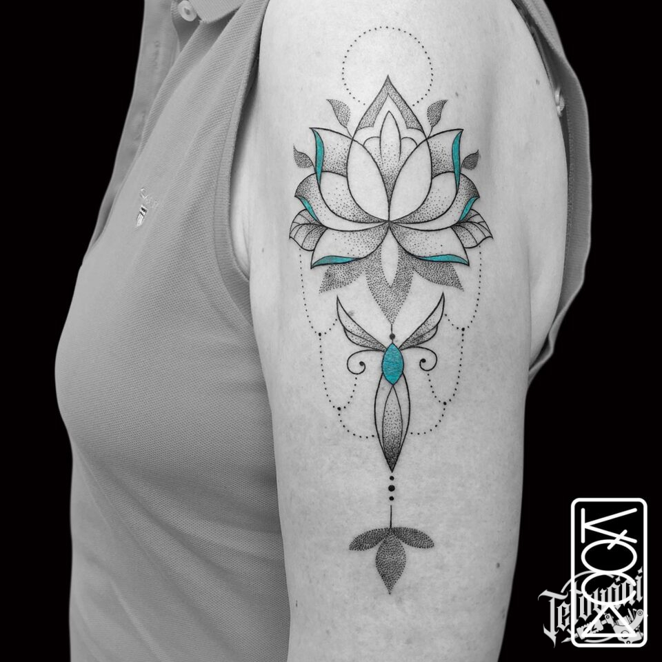 Tetování mandala lotus na rameni