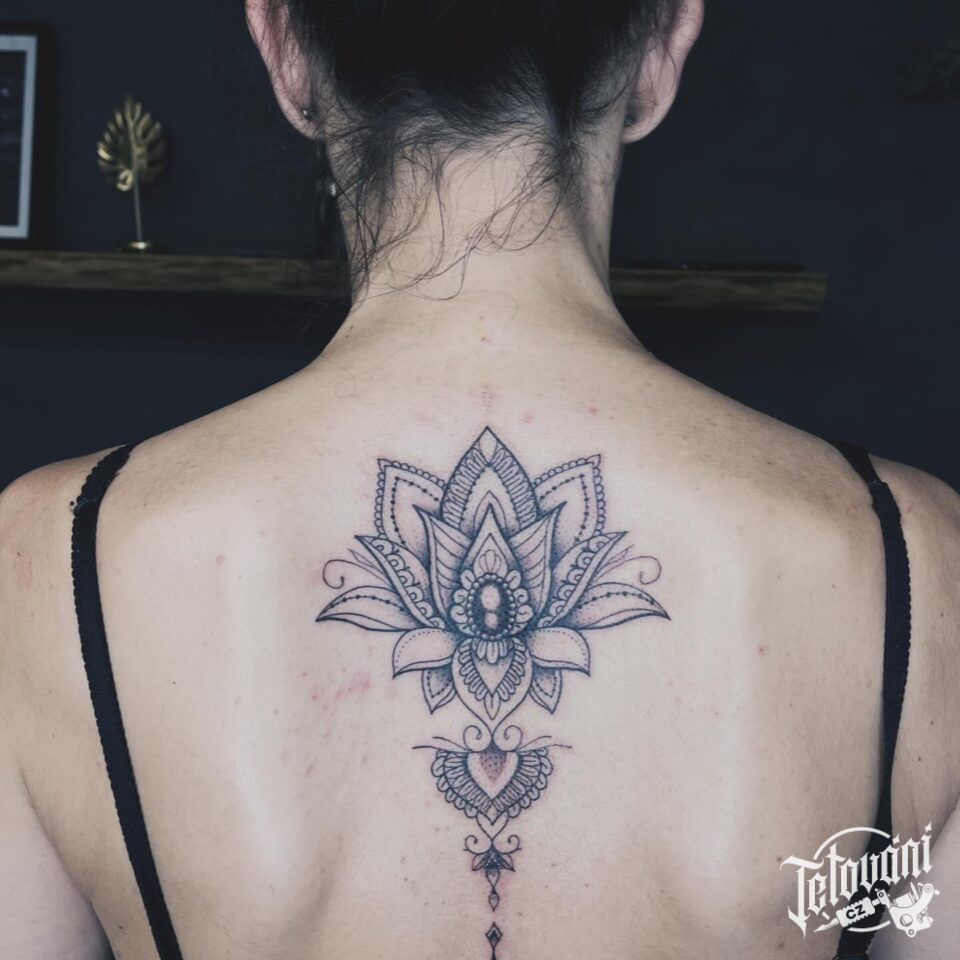 Tetování mandala lotus na zádech