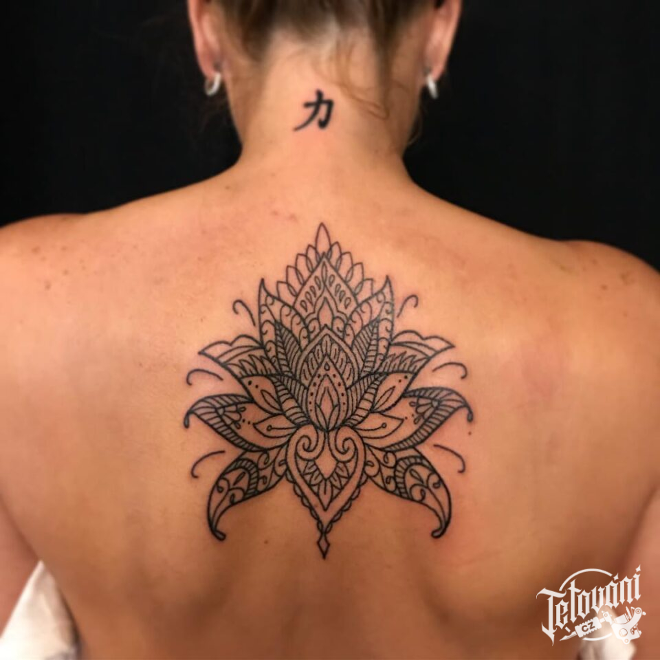 Tetování mandala lotus na zádech