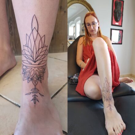 Tetování mandala lotus s květinou na nártu