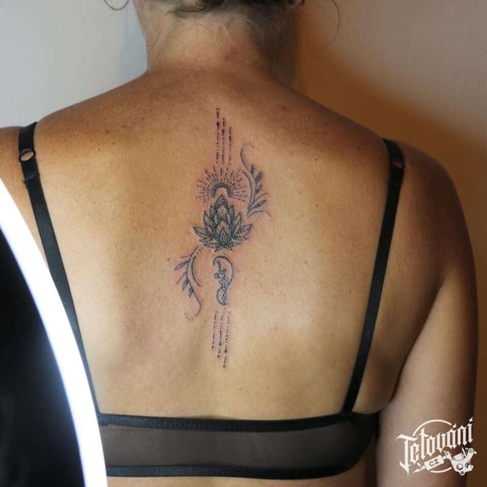 Tetování mandala, mandala lotus a ornamenty na páteř