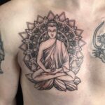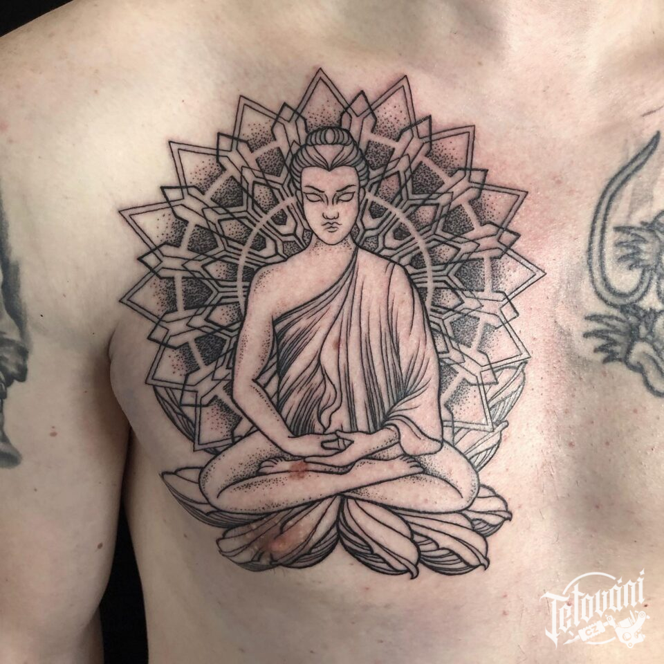 Tetování mandala, mandala štěstí a Buddha na prsa