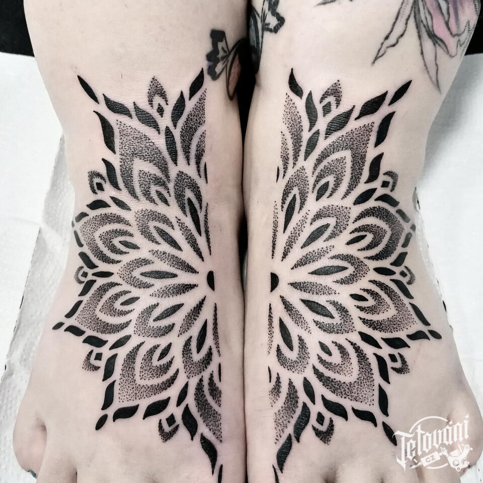 Tetování mandala, mandala štěstí na nárt