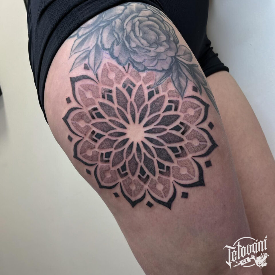Tetování mandala na bok stehna