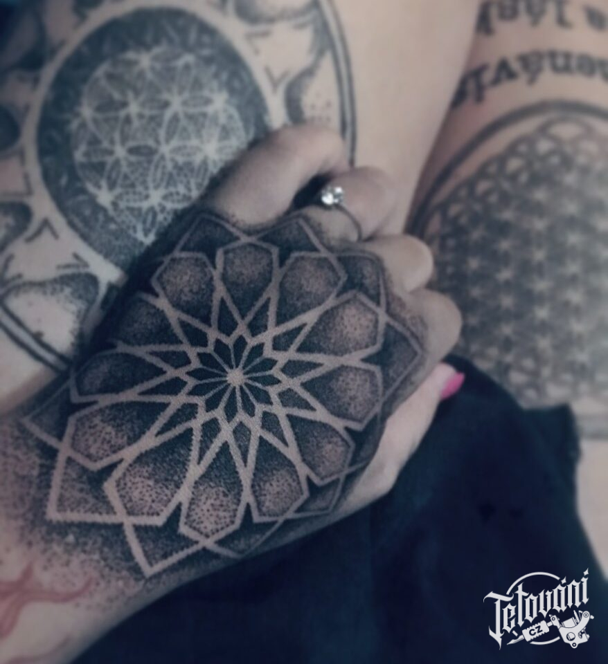 Tetování mandala na hřbetu ruky