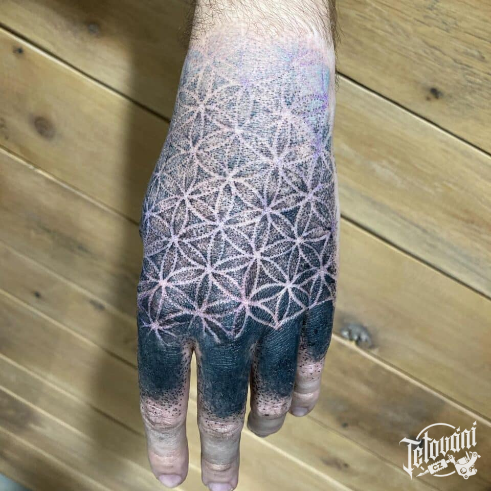 Tetování mandala na hřbetu ruky