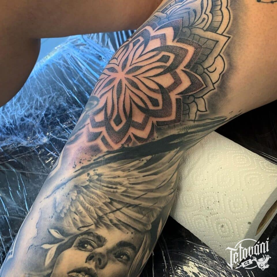 Tetování mandala na koleni