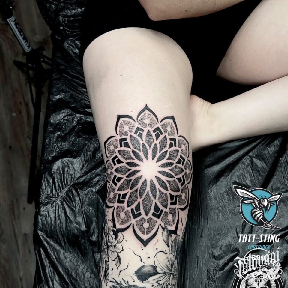 Tetování mandala na koleni