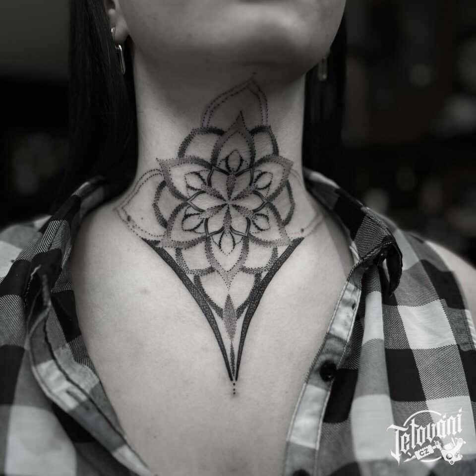 Tetování mandala na krku