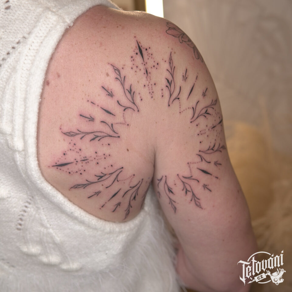 Tetování mandala na lopatku a rameno