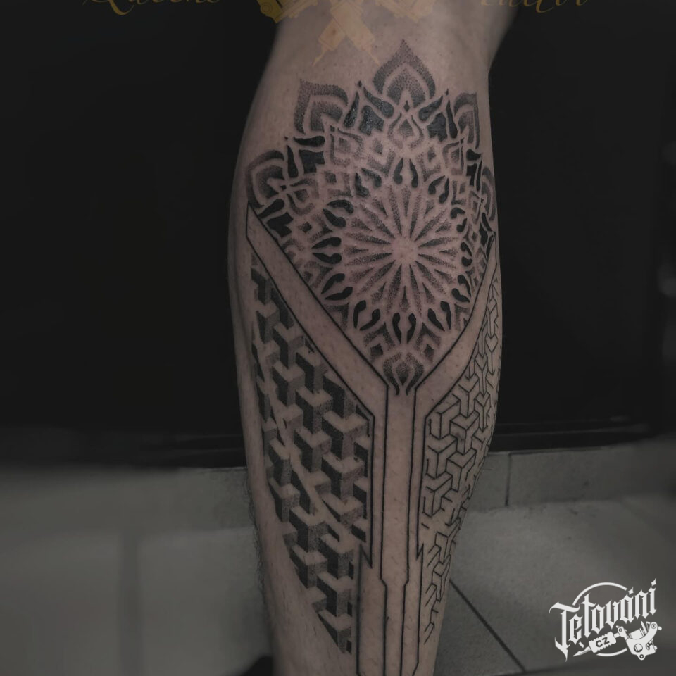 Tetování mandala na lýtku