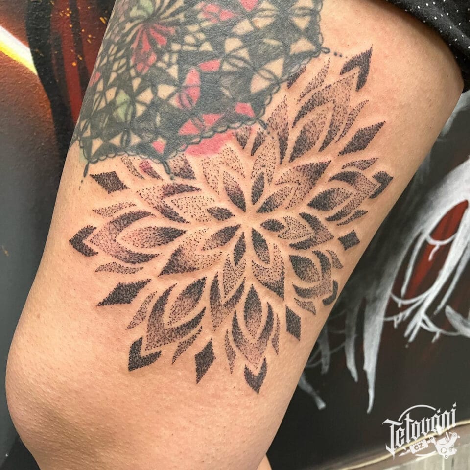 Tetování mandala na stehně
