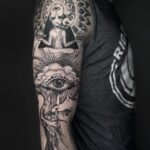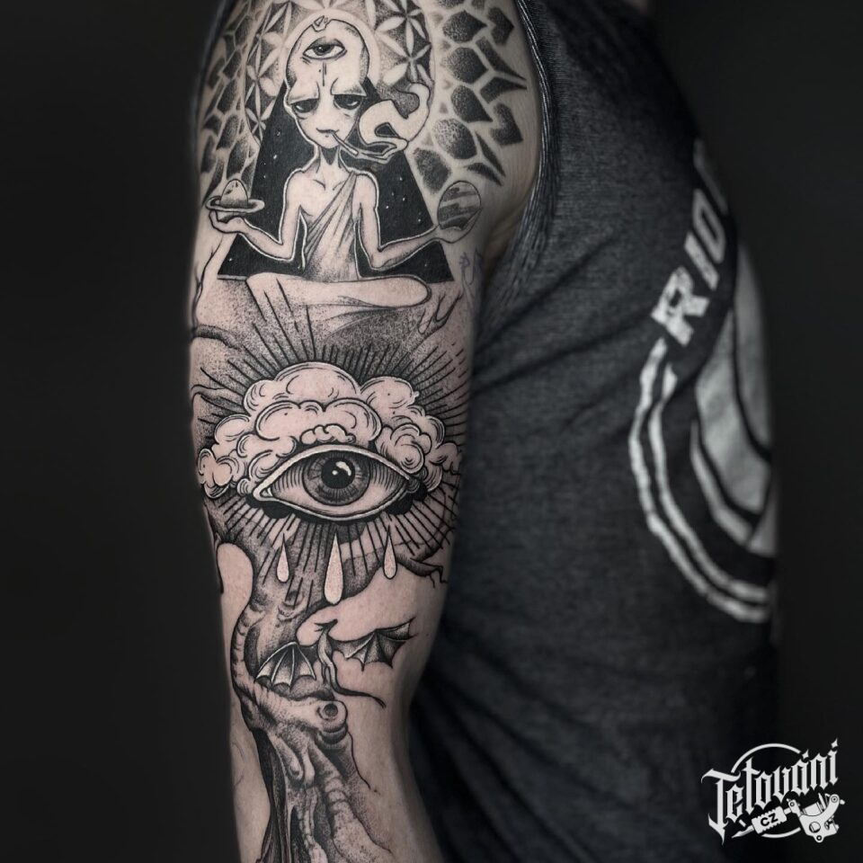 Tetování mandala oko, třetí oko, vesmír na rameno