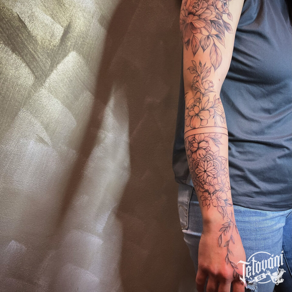 Tetování mandala s květinami na předloktí