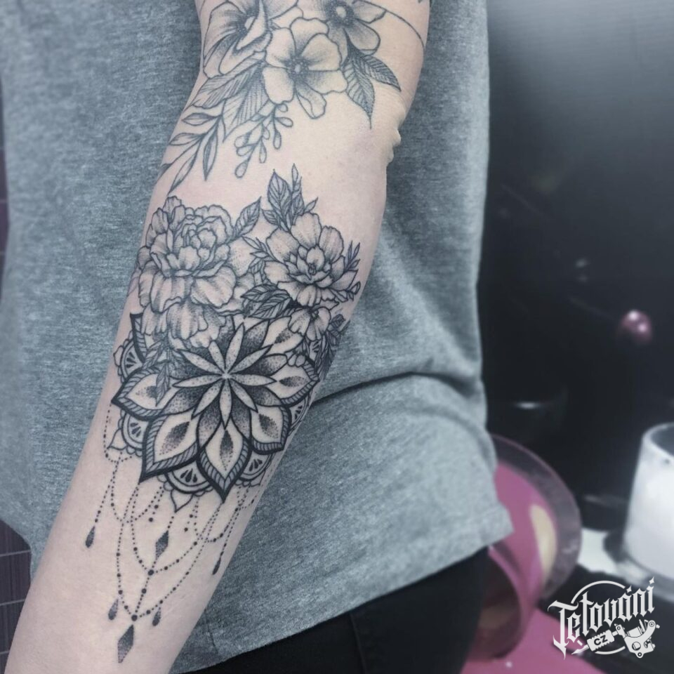 Tetování mandala s květinami na ruce