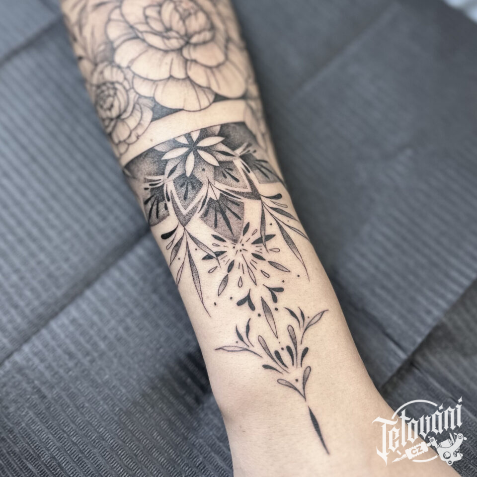 Tetování mandala s ornamenty na předloktí