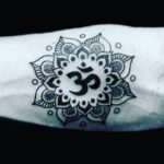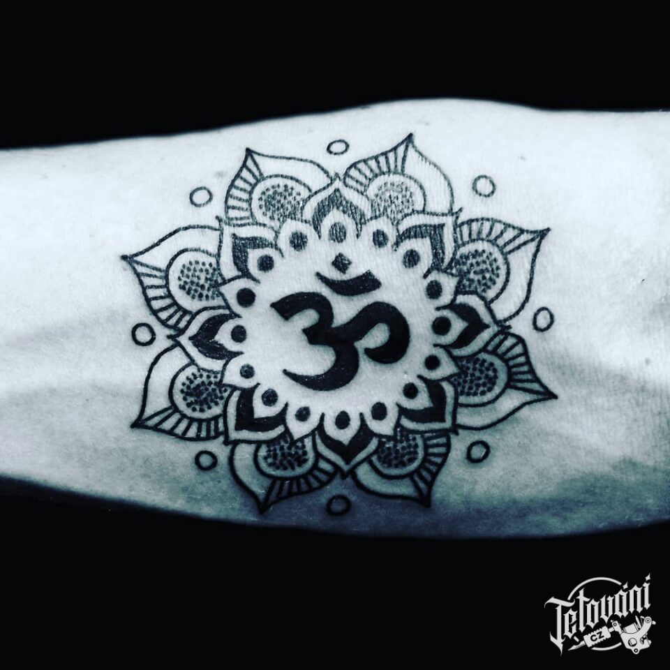 Tetování mandala štěstí se symbolem náboženství na předloktí