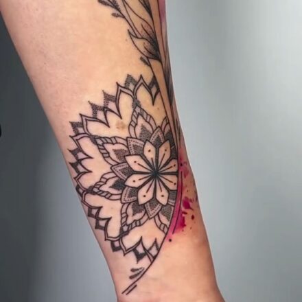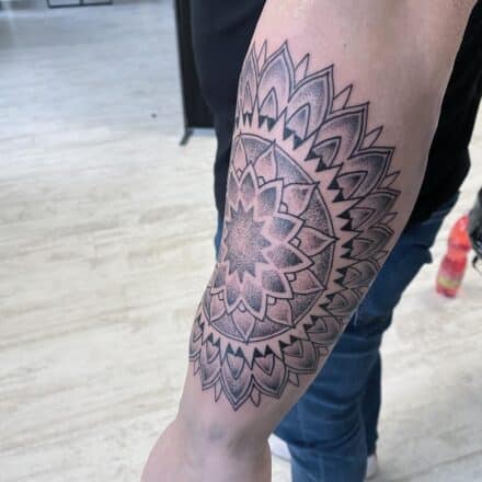 Tetování mandala štěstí, znak a symbol štěstí na rameno
