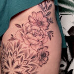 Tetování mandaly s květem na stehno