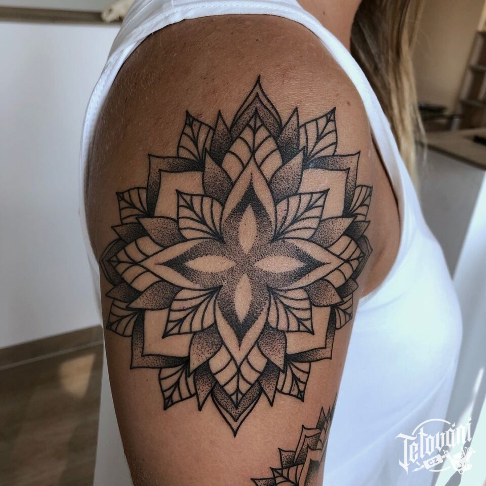 Tetování mandaly, znaky a symboly na rameno