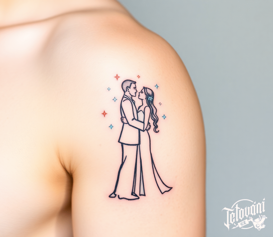 Tetování manželé, svatební tetování na rameno