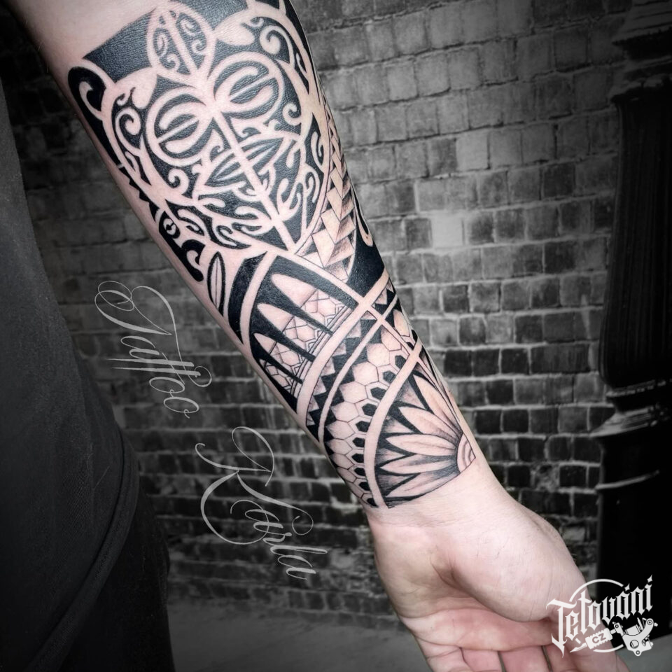 Tetování maorské symboly, ornamenty na předloktí