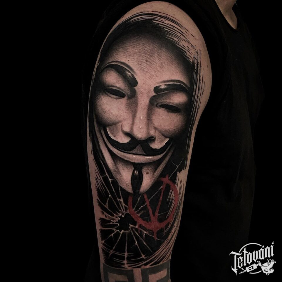 Tetování maska Anonymous, symbol na rameno